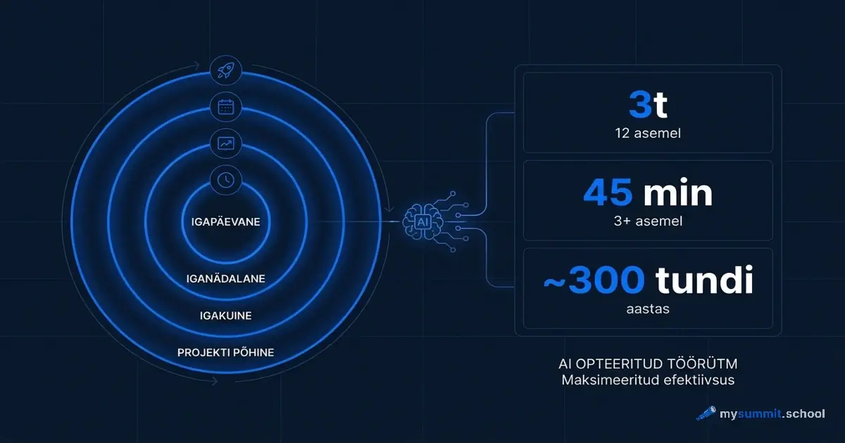 TI-ga väheneb see aeg kolmele tunnile. Aga ainult ühel tingimusel: TI peab olema integreeritud igapäevasesse töörütmi, mitte kasutatav episoodiliselt – „kui meelde tuleb".
