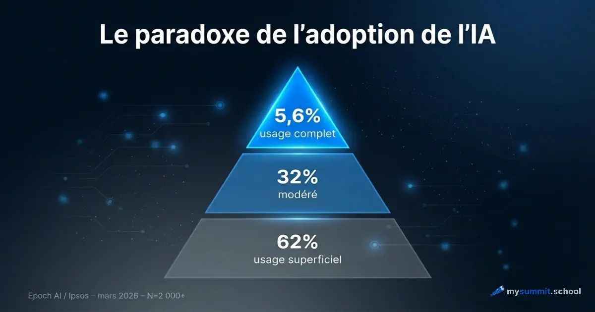 Ce tableau, nous l’avons déjà vu. Dans l’étude Brookings, les mêmes 57 % d’utilisateurs ne donnaient que 19 % de retour tangible. Nous avons maintenant une explication détaillée : le problème ne vient pas des outils, mais de la profondeur de l’usage.